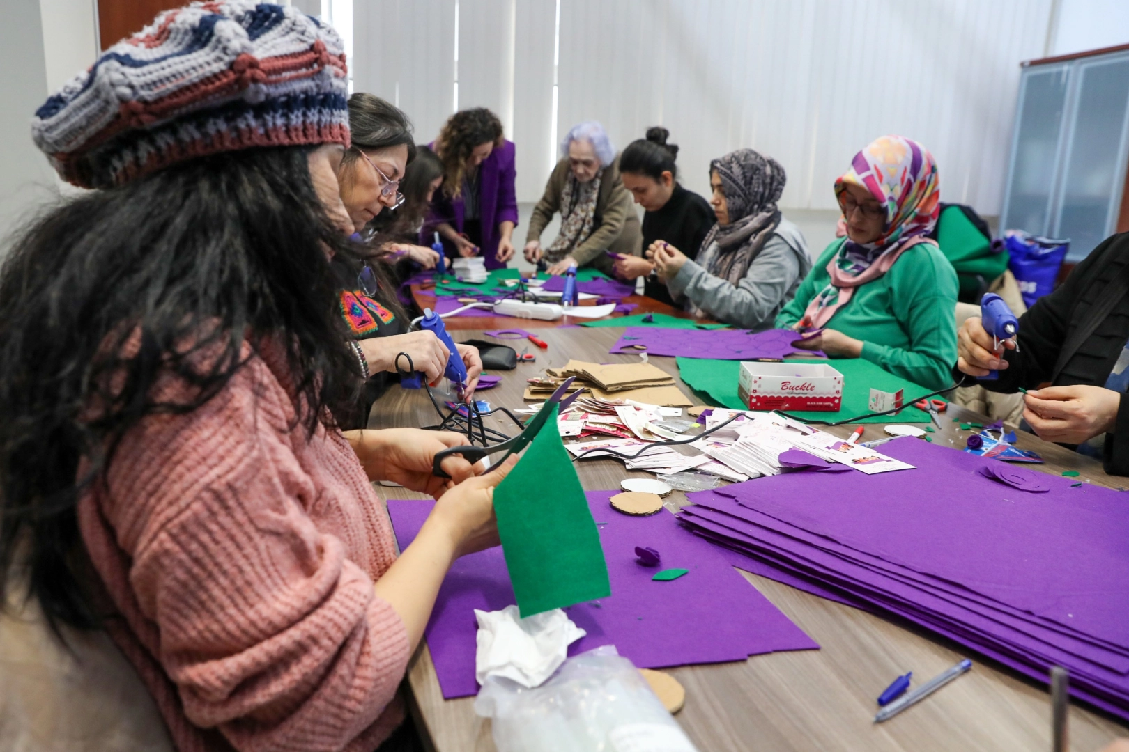 Kadın mücadelesinin simgeleriyle zenginleştirilen çalışmalarda katılımcılar hem kendi tasarımlarını oluşturdu hem de fikir alışverişinde bulunarak kolektif üretim deneyimi yaşadı. Keyifli vakit geçiren ve ortak bir amaç doğrultusunda üretmenin mutluluğunu paylaşan kadınlar, düzenlenen etkinlik dolayısıyla Bursa Kent Konseyi’ne teşekkür etti.