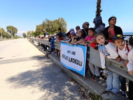 Finike Devlet Hastanesi yanındaki köprüden başlayarak Fatih Bulvarı Yeni Mahalle yol kavşağına kadar olan bölgeyi adeta bir bayram yerine çeviren öğrenciler, saat 14.15 ile 15.30 arasında gerçekleşen geçişi vatandaşlarla birlikte büyük bir heyecanla takip etti. Ellerinde Türk bayraklarıyla sporculara moral veren minikler, uluslararası bu dev organizasyonun bir parçası olmanın gururunu yaşadı.Video Linki: https://youtu.be/iO-weFI-exc