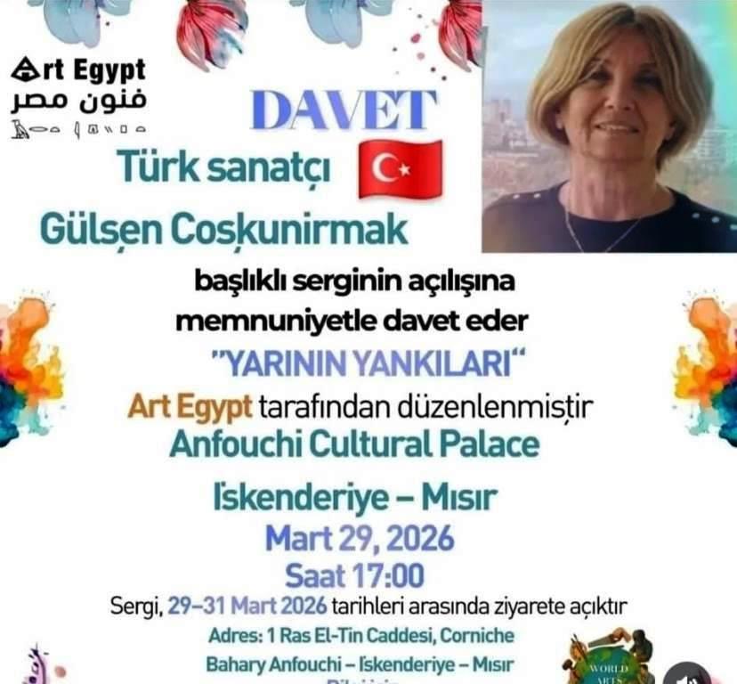 Art Egypt tarafından organize edilen sergi, 29 Mart 2026 Pazar günü saat 17.00’de İskenderiye’de bulunan Anfouchi Cultural Palace’ta açılacak. Sergi, 31 Mart 2026 tarihine kadar ziyaretçilere açık olacak.