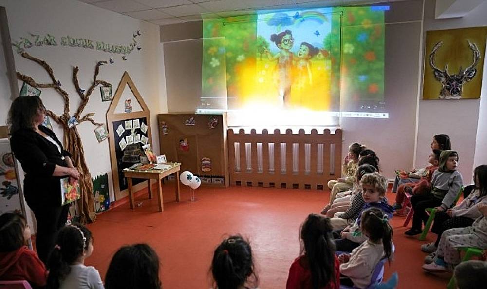 Okul öncesi öğretmeni Nilay Yücel, depremde kaybettiği kızlarının anısını yaşatmak amacıyla kaleme aldığı “Vera & Lena Doğada Neler Oluyor?” adlı kitabı çocuklara okudu. Aynı zamanda 22 öğrencisi bulunan bir okul öncesi öğretmeni olduğunu belirten Yücel, çocuklara depremi ve doğa olaylarını onların anlayabileceği bir dille anlattı. Etkinlikte ayrıca, Yücel’in kızları Vera ve Lena’nın fotoğraflarından yapay zekâ yardımıyla hazırlanan kısa bir video da çocuklara izletildi. Minik öğrencilerin dikkatle takip ettiği video, etkinliğe katılanlara duygu dolu anlar yaşattı.