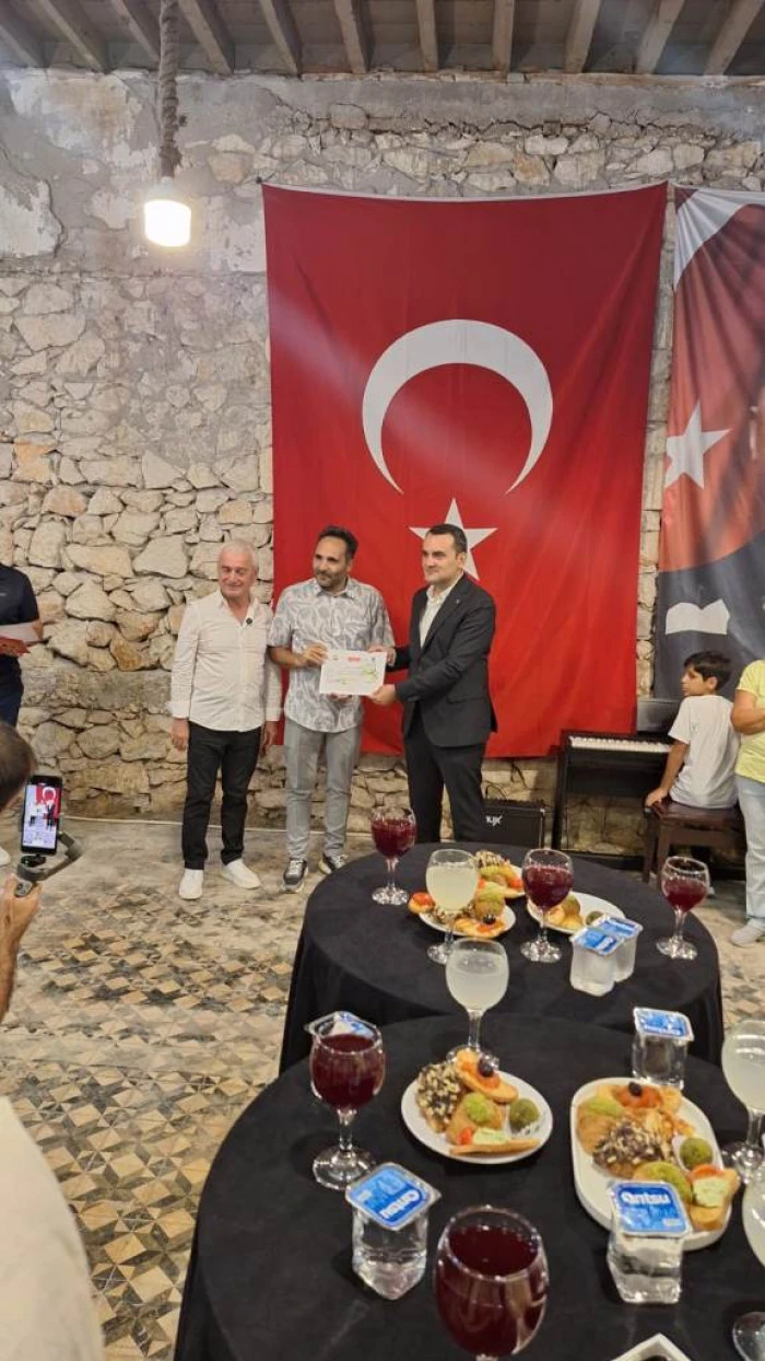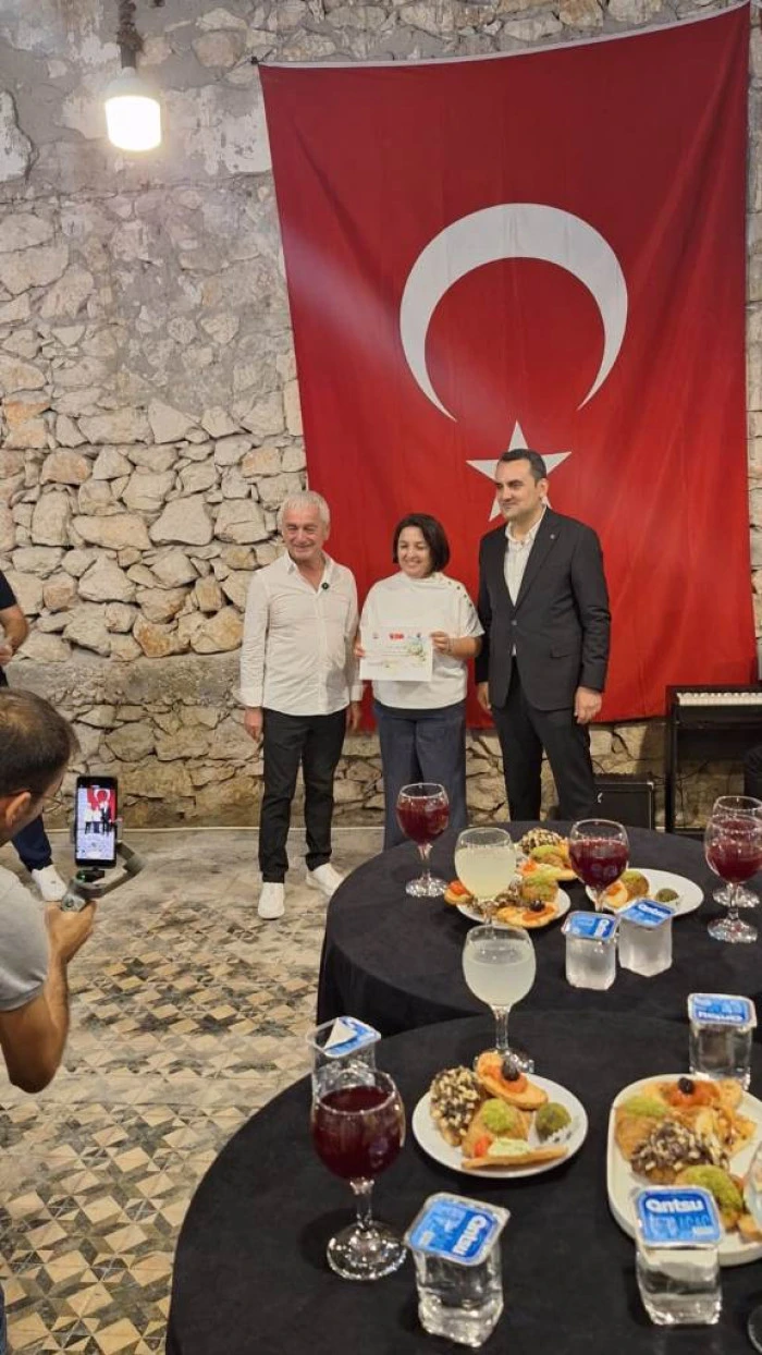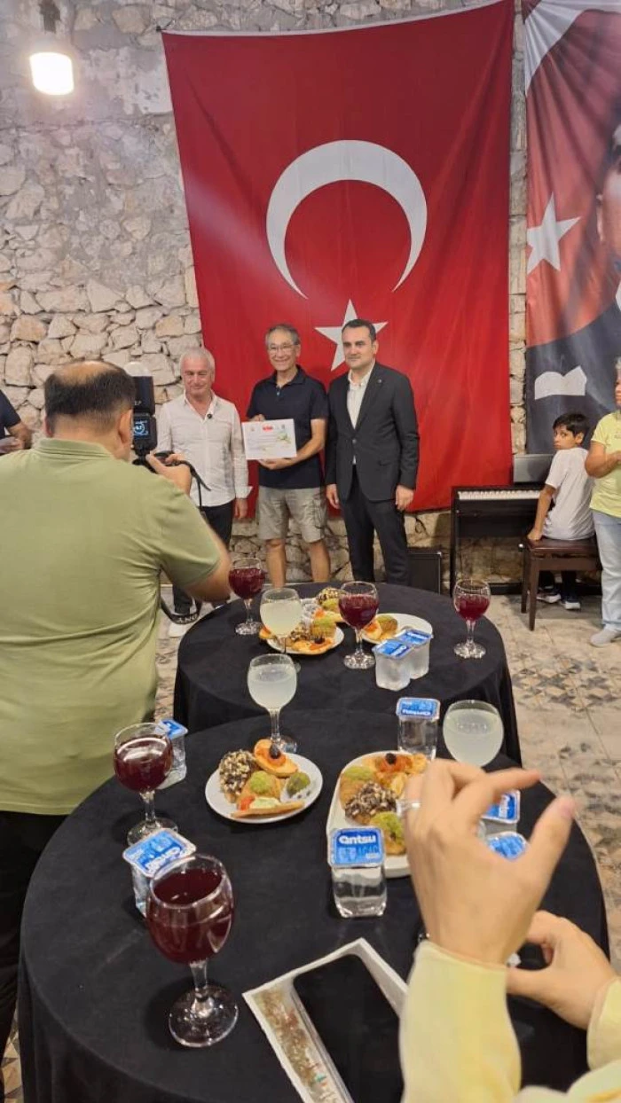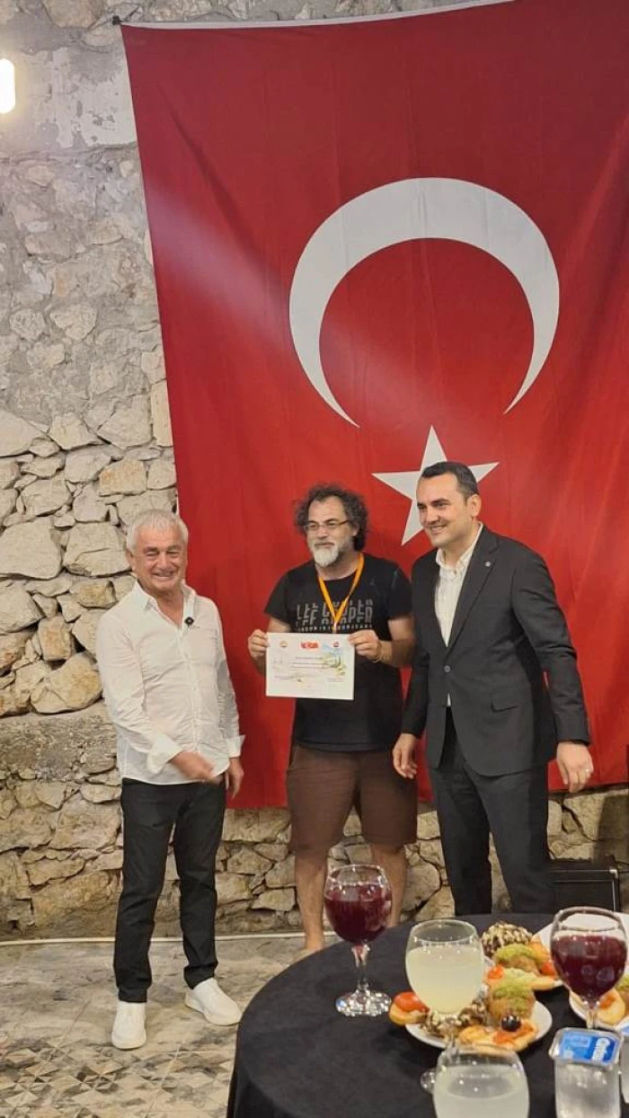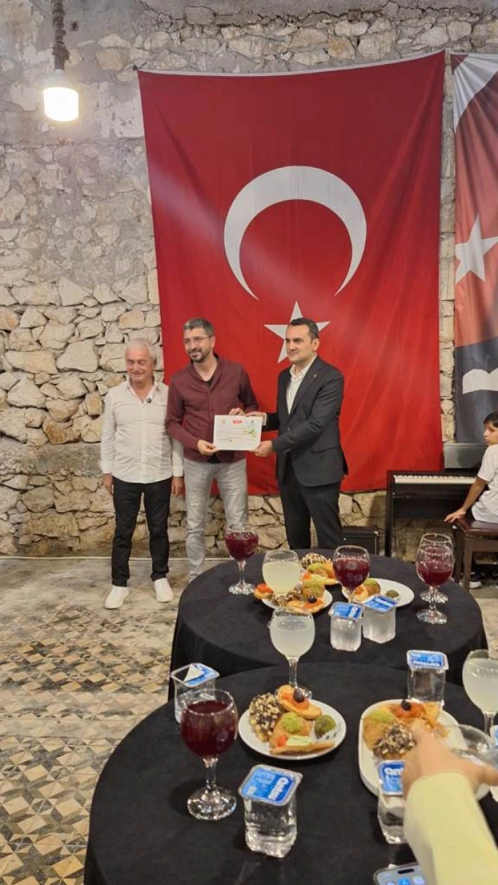 Finike Belediye Başkanı Mustafa Geyikçi, festivalin son gününde düzenlenen sergide sanatçıların eserlerini inceleyerek teşekkür sertifikalarını ve hediyelerini takdim etti.