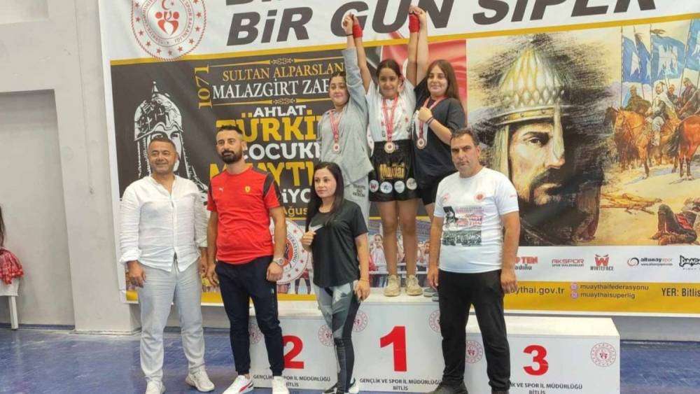 ADIYAMAN (PHA) - Şevket BOZKURT - Bitlis'de, Sultan Alparslan Malazgirt Zaferi 1071 anısına düzenlenen Minikler ve Yıldızlar Türkiye Muaythai Şampiyonası’nda Kahtalı sporcu Özlem Yanak birinci oldu.