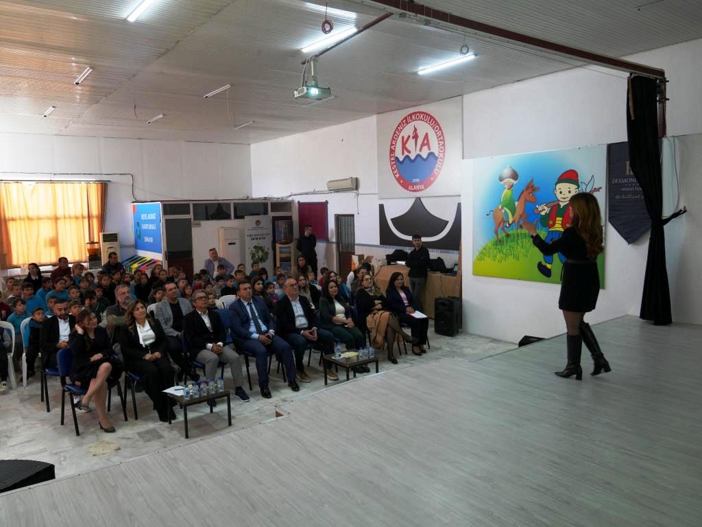 Diamond Hill Resort Hotel Çevre Mühendisi Hafize Yılmaz sıfır atık ve çevre bilinci üzerine eğitim verirken, Alanya Belediyesi İklim Değişikliği ve Sıfır Atık Müdürlüğü’nden Biyolog Gülşah Nergiz sürdürülebilir atık yönetimi hakkında sunum yaptı. Gıda Mühendisi Zeynep Kiriş ise gıda israfı ve su verimliliği konularında öğrencilere bilgi verdi.