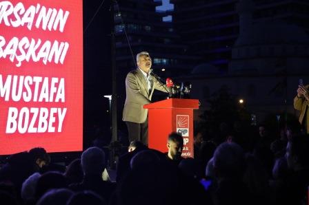 "Bu sıradan bir seçim sonucu değil, Bursa’nın çok güçlü bir irade beyanıdır! Bozbey’in suçu; çocuklar için kreş açmak, kent lokantalarıyla yoksulluğa merhem olmak, asbestli boruları değiştirip halkın sağlığını düşünmek mi? Biz biliyoruz ki mesele bir kişi meselesi değil, halkın iradesinin yok sayılmasıdır. Bursa boyun eğmez, iradesine sahip çıkar!"