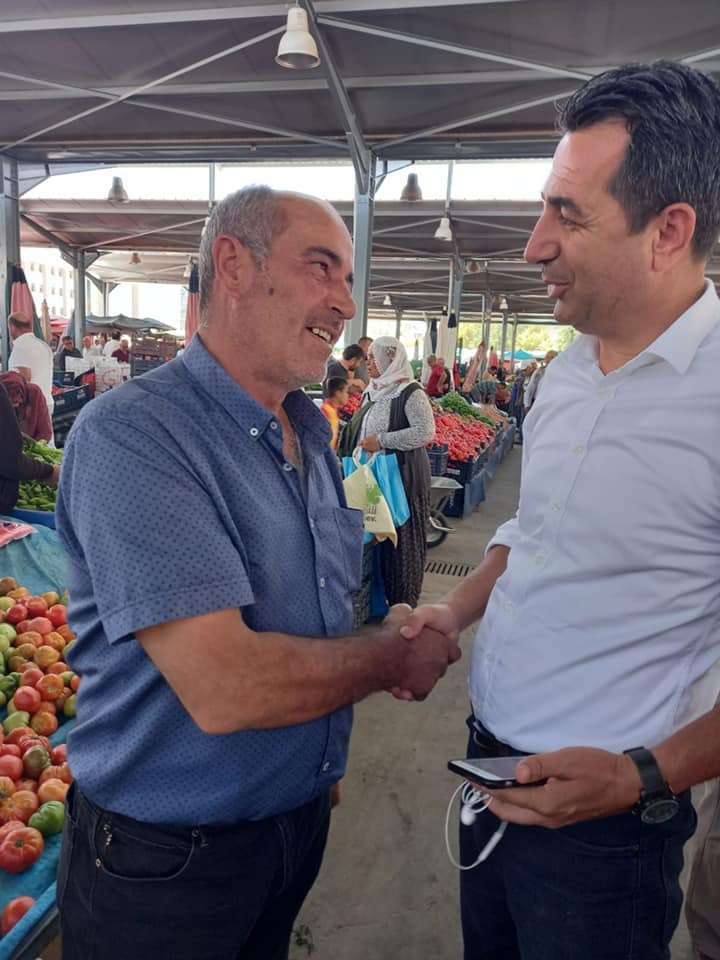 Vatandaşın sorunlarını CHP iktidarının çözeceğini belirten Başkan Erhan Adem, “Pazartesi pazarını merkez ilçe başkanı Kamil Davarci ile birlikte ziyaret ettik. Esnaf da vatandaş da ülke ekonomisinin gidişatından memnun değil. Bu gidişatın durmasını istiyor. Vatandaş alım gücünü yitirdiğinden şikayetçi, artık değişim şart diyor. CHP olarak halkımızdan görev bekliyoruz. Bu gidişatı CHP iktidarı düzeltir" şeklinde konuştu.