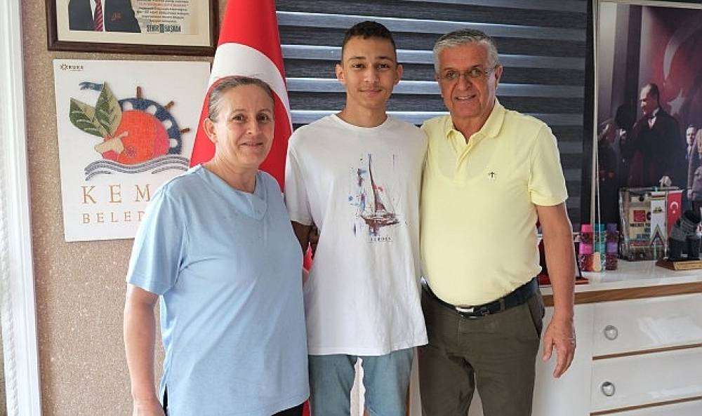 Kemer Belediye Başkanı Necati Topaloğlu’nun üniversite okuyan öğrencilere sağladığı burs desteğinden faydalanan Ege Atalık, Başkan Topaloğlu’na teşekkür ziyaretinde bulundu. Atalık’a annesi Sevgi Uysal eşlik etti.