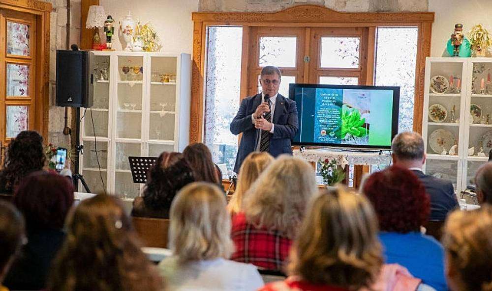 İzmir Büyükşehir Belediye Başkanı Dr. Cemil Tugay, Bademler Sanat Köyü’nde düzenlenen şeker otunun (stevia) tanıtımı ve atölye çalışmasına katıldı. Çamlı Üretim ve Pazarlama Kooperatifi tarafından üretilen ve yapay tatlandırıcılara alternatif olan sıfır kalorili şeker otu bitkisine ilişkin destek mesajı veren Başkan Tugay, “Üretim, pazarlama, yeni ürün geliştirme çalışmaları konusunda katkı vermekten büyük mutluluk duyarız” dedi.