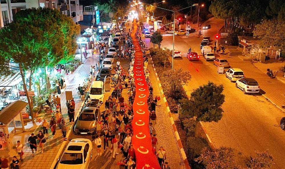 Bergama'da zafer coşkusu: 200 metrelik Türk Bayrağı Bergama sokaklarını kırmızı-beyaza boyadı