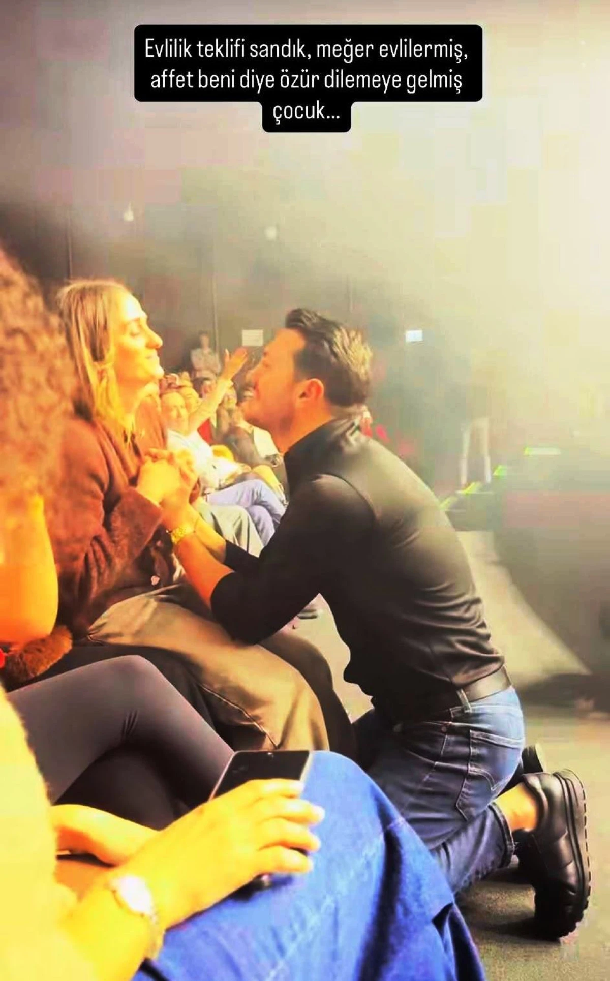 Bu anları konser izleyenler arasında olan ünlü haber spikeri Hande Sarıoğlu sosyal medyasından ‘Evlilik teklifi sandık, meğer evlilermiş, affet beni diye özür dilemeye gelmiş çocuk...’ notuyla paylaştı.