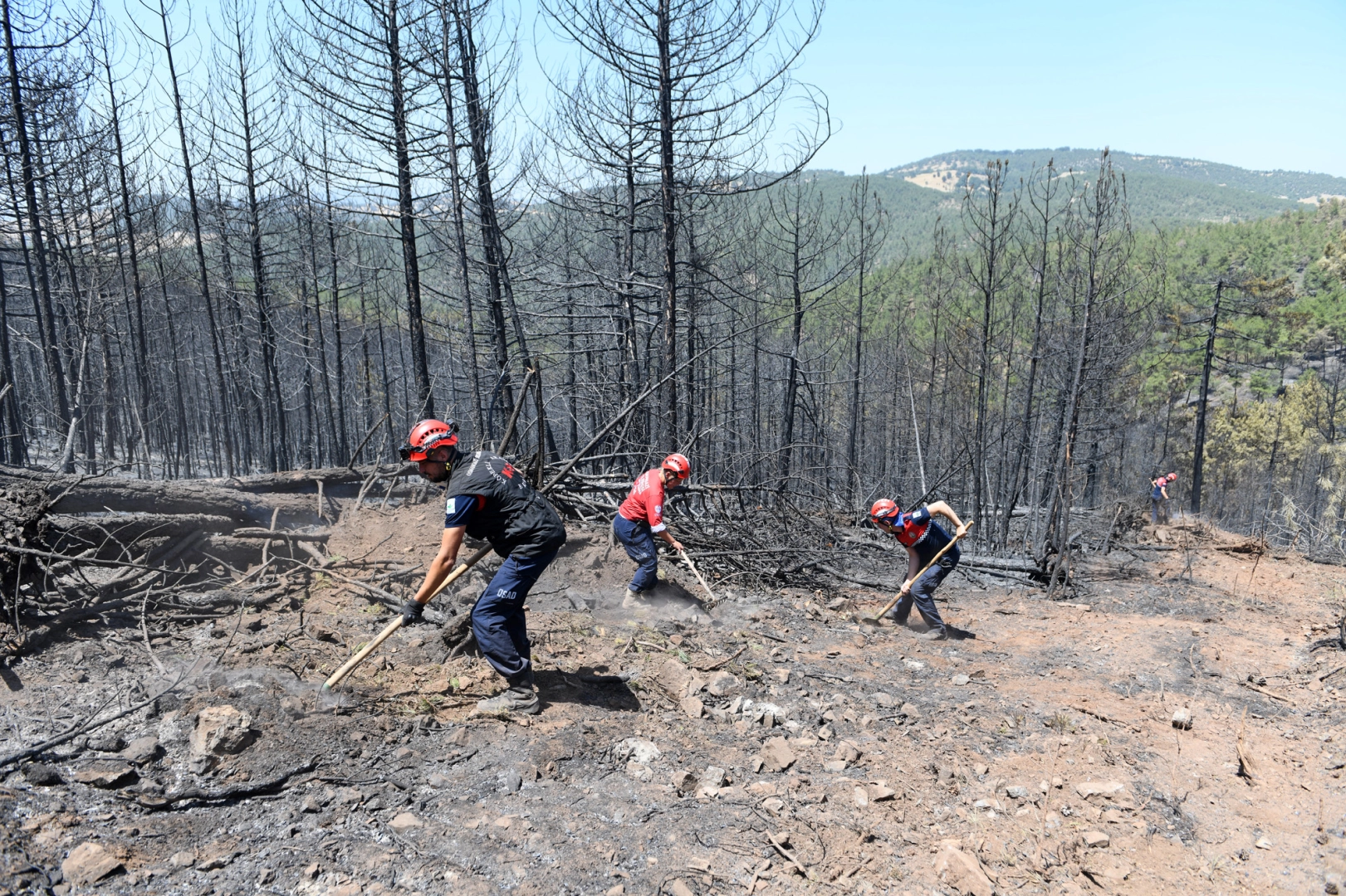 OSAD ekibinden Mehmet Mümin ise, “İlk günden beri farklı bölgelerde aktif olarak görev alıyoruz. Zor arazi koşullarına rağmen elimizden geleni yapıyoruz. Bazen ateş atlamaları gibi tehlikeli durumlarla karşı karşıya kalıyoruz ancak mücadeleye devam ediyoruz” şeklinde konuştu.