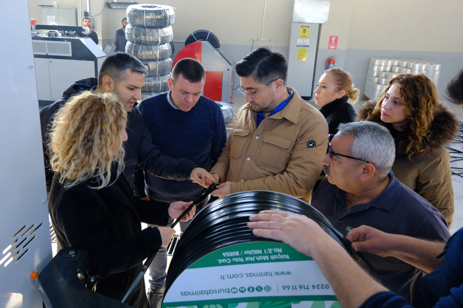 Bursa Büyükşehir Belediyesi’nin Tarım Peyzaj AŞ yatırımıyla kente kazandırdığı Tarım Plast Fabrikası (Damla Sulama Boru Üretim Tesisi), farklı şehirlere de örnek oluyor. Balıkesir Büyükşehir Belediyesi heyeti tarafından incelenen tesis, Balıkesir’de hayata geçirilmesi planlanan projeye örnek olacak.