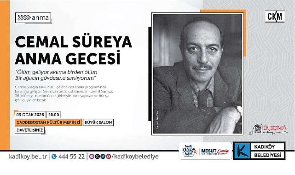 Türk şiirinin usta isimlerinden Cemal Süreya, Kadıköy Belediyesi Caddebostan Kültür Merkezi’nde şiir, tiyatro, müzik ve söyleşinin bir araya geldiği geceyle anılacak. Cemal Süreya’nın edebiyata, dile ve kültüre bıraktığı izlerin farklı disiplinler aracılığıyla yeniden yorumlanacağı programın sunuculuğunu Övünç Ezgi Yılmaz üstlenecek. Gecenin açılış konuşmasını yapacak olan Seyyit Nezir, Cemal Süreya’nın şiir dünyasını ve kuşağıyla kurduğu ilişkiyi ele alacak.