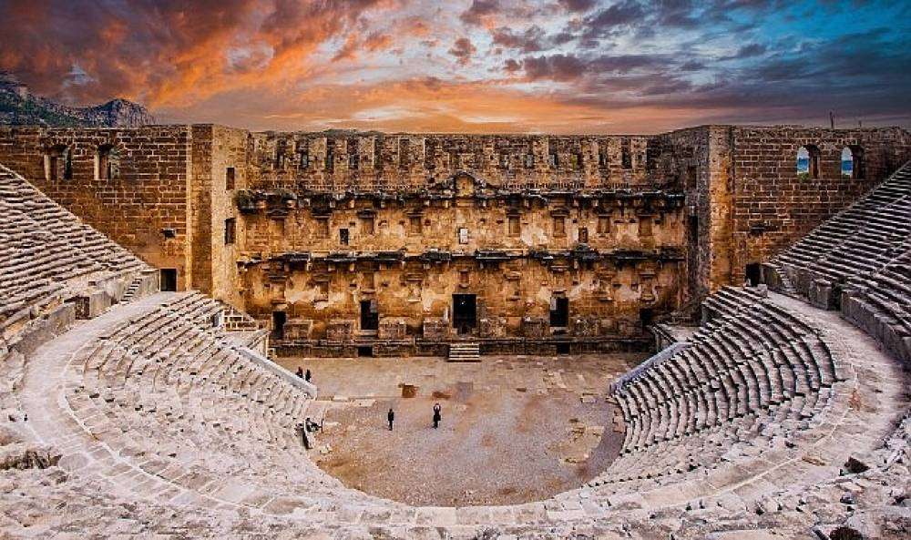 Roma döneminden günümüze kadar korunan tiyatrosu ile bilinen Aspendos, tarihî kalıntılarıyla eşsiz bir atmosfer sunuyor. Aspendos’ta yer alan su kemerleri, antik pazar kalıntıları ve agora, kentin sosyal ve ticari yaşamını anlamak için gezilmeye değer yerlerden. Aspendos’a gitmişken, çevresindeki Perge ve Side antik kentlerini de ziyaret edebilirsiniz. Doğal güzellikler ve tarihî zenginlikler ile dolu yürüyüşler yaparak antik dünyaya dair izleri derinlemesine keşfedebilirsiniz. Antalya’nın kültürel güzelliklerini yaz sıcağını ardınızda bırakıp ve daha uygun uçak bileti alarak keşfetmek gezinizin keyfini artıracak.