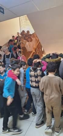 Ardından öğretmenlerin yönlendirmesiyle öğrenciler sınıflarını düzenli bir şekilde terk ederek okul bahçesinde belirlenen toplanma alanına geçti.