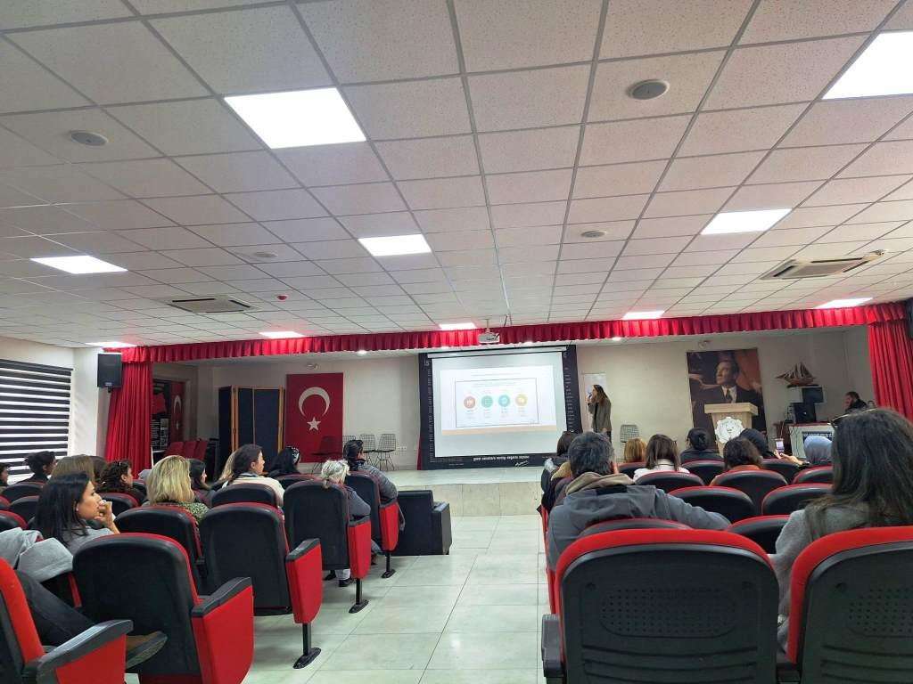 SEÇKİNHABERTV- Finike İlçe Sağlık Müdürlüğü tarafından, ilçedeki öğretmenlere yönelik eğitim sunumu, Psikolog Ayşe KAÇAN tarafından Cumhuriyet Mesleki ve Teknik Anadolu Lisesi toplantı salonunda gerçekleştirildi.