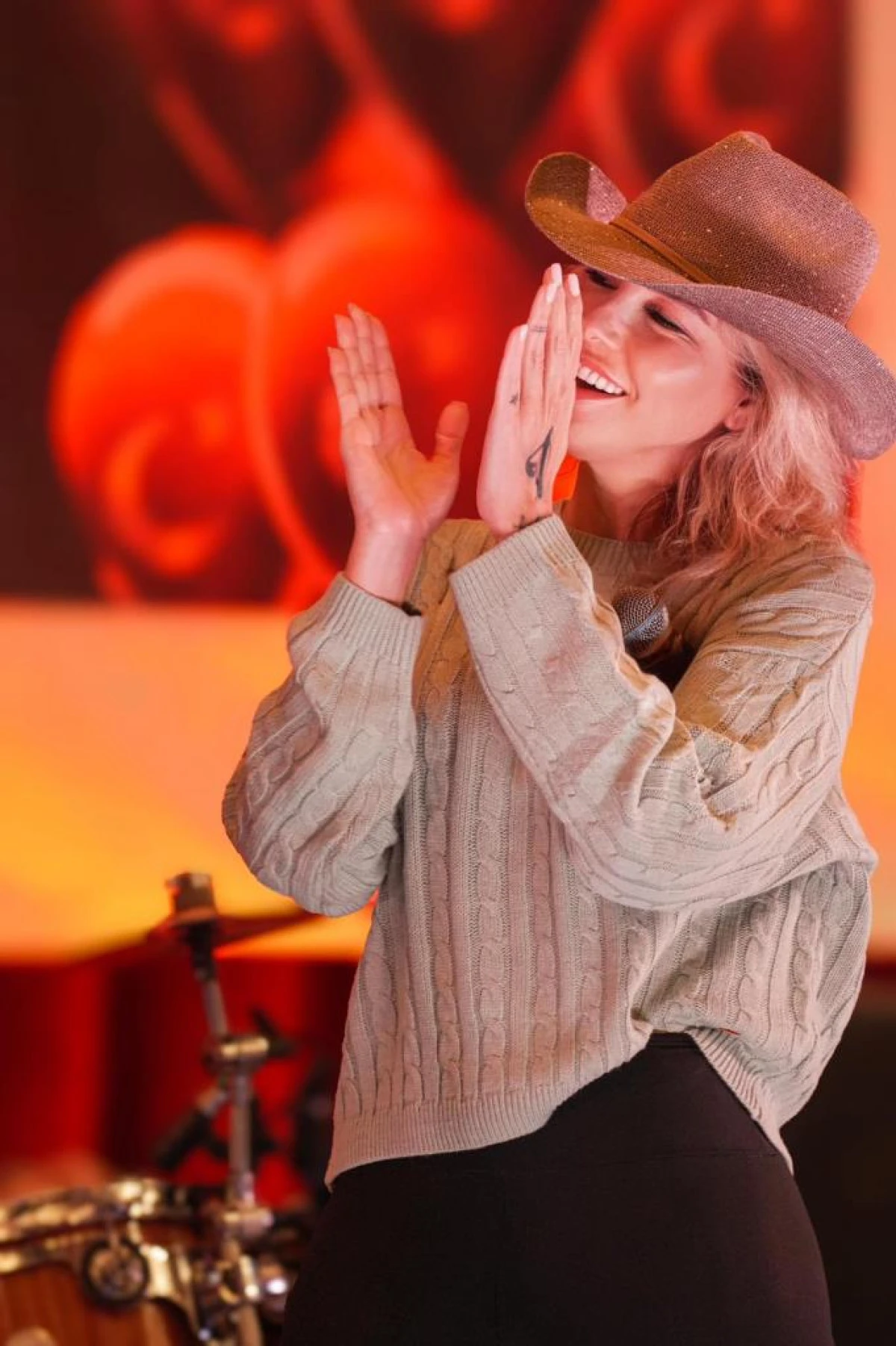Gecede sevilen şarkılarını seslendiren sanatçı, ayrıca İzmir Marşı ve Onuncu Yıl Marşını da hayranlarıyla hep bir ağızdan söyledi. Gülben Ergen’e sahnede, kırmızı kıyafetiyle dikkat çekti.