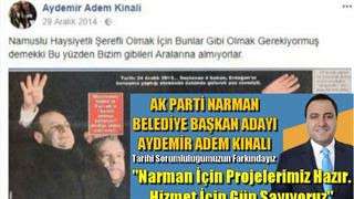 AKP Erzurum’un Narman ilçesi belediye başkan adayı Aydemir Adem Kınalı'nın sosyal medya paylaşımları ortalığı karıştıracak gibi görünüyor. Daha önce aday gösterilmeyen Kınalı neler yazmış neler. AK Parti icraatlarıyla alay eden Kınalı’nın silmiş olsa bile bu paylaşımları, “Bu kadarına pes!” dedirtiyor. İşte o paylaşımlar!