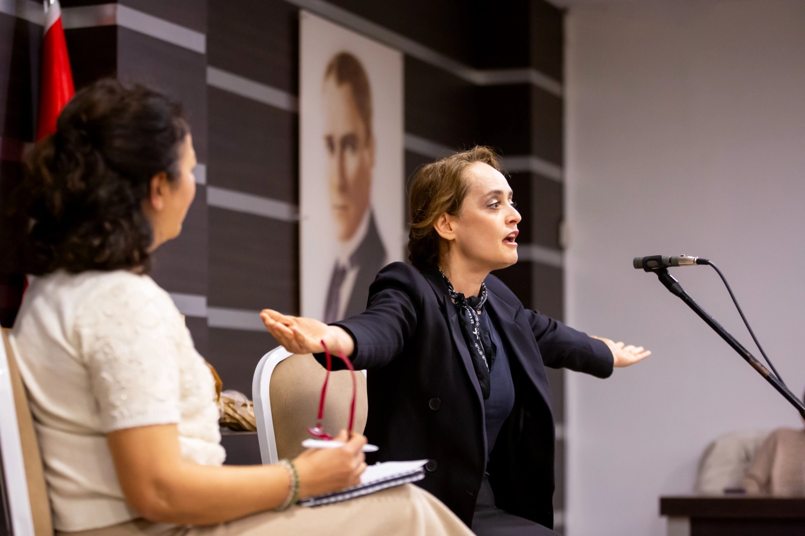 Narlıdere Atatürk Kültür Merkezi’nde (AKM) gerçekleşen programda, Türk kadınlarının tiyatro sahnesinde yer almasına öncülük eden, sahneye çıkma yasağına meydan okuyan Afife Jale’nin ilham veren ve hüzünlü yaşam hikâyesi anlatıldı.
