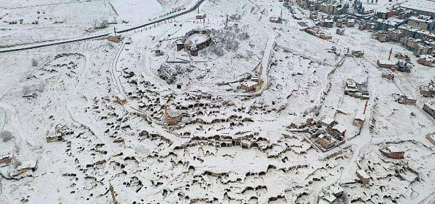 Nevşehir Kalesi etrafındaki dünyanın en büyük yamaç yerleşim merkezi olarak kabul edilen ve Nevşehir Belediyesi tarafından turizme kazandırılan Kayaşehir’de beyaz örtü ile kaplandı.