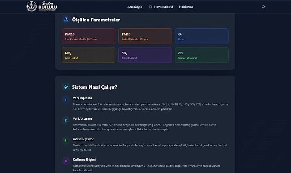 Manisa merkez ve ilçelerine stratejik olarak yerleştirilen ileri teknoloji ölçüm istasyonlarından elde edilen veriler, platform üzerinden anında işleniyor. Sistem, özellikle insan sağlığı üzerindeki etkileri kritik olan partikül madde kirletici değerlerini, anlaşılır bir Hava Kalitesi İndeksi'ne (HKİ) dönüştürerek halka ulaştırıyor. Uygulama, özellikle solunum yolu rahatsızlığı bulunan bireyler, çocuklar, yaşlılar ve hassas grupta yer alan tüm vatandaşlar için hayati bir öneme sahip.