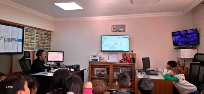 hava durumunun nasıl tahmin edildiği, sıcaklık ve yağış ölçümlerinin hangi cihazlarla yapıldığı, rüzgârın yönü ve hızının nasıl belirlendiği gibi konular sade ve anlaşılır bir dille anlatıldı. Minik öğrenciler, günlük hayatta sıkça duydukları “hava tahmini” kavramının aslında bilimsel ölçümlere ve gözlemlere dayandığını öğrenerek büyük bir ilgiyle sunumu takip etti.