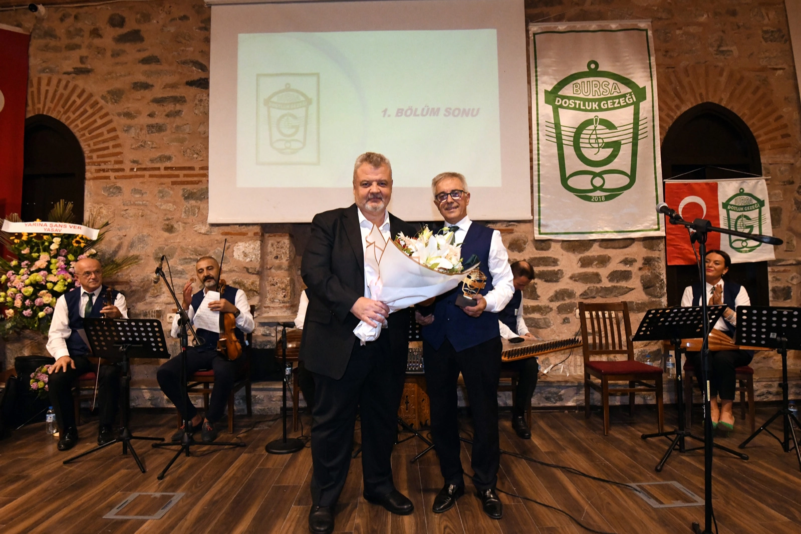 Serhande Ali Piliçer yönetimde gerçekleştirilen Bursa Dostluk Gezeği programı, gezek duası ve hicaz makamında meydan faslıyla başladı. Gecenin ikinci bölümü solo olarak seslendirilen şarkılar ile devam etti. Solo bölümde, ölüm yıl dönümü olması dolayısıyla Sanat Güneşi Zeki Müren’in eserleri seslendirildi. Programa katılan müzik severler böyle güzel bir gecede bir araya gelmelerini sağlayan Osmangazi Belediye Başkanı Erkan Aydın’a teşekkür etti.