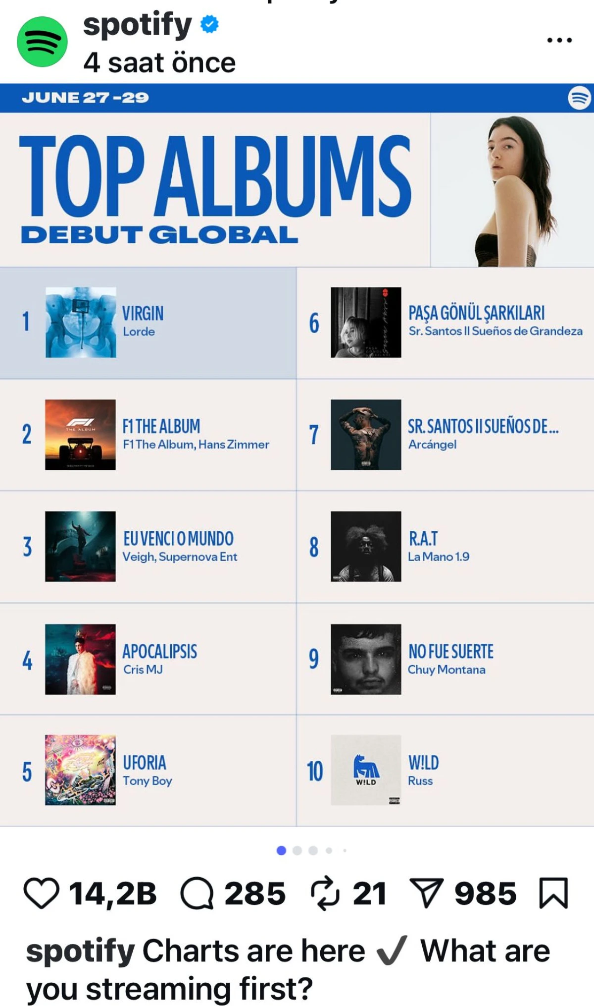 Albüm, yayınlanmasının ardından kısa sürede milyonlarca dinlenmeye ulaşarak, dünya çapında en çok dinlenen albümler arasında 6. sıraya yükseldi.